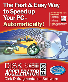 If hard disk fragmentation is bogging down your PC, there’s no better solution than Disk Accelerator Pro®. Far more effective than the Windows built-in defragmenter, Disk Accelerator Pro even offers a Screensaver Mode to defragment your computer while it’s idle. As a bonus, you’ll get File Recovery Deluxe (a $49.95 value) to help recover deleted files and folders.
