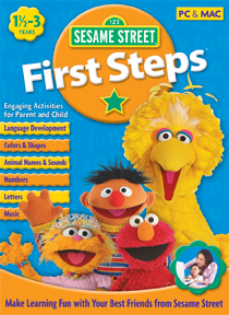 Developed by experts in childhood education, Sesame Street®First Steps™ is an exciting new way for parents to interact with their children while encouraging learning. Along with Elmo, Ernie, Big Bird and Zoe, parents and children can sing songs, play games and learn the fundamentals of language through a variety of charming and engaging activities. Designed specifically for ages 1½-3, Sesame Street First Steps entertains children with sing-along songs, cause and effect explorations and a vital introduction to letters, numbers, colors, objects, shapes, seasons and animals. With bright colors, delightful music, animation and easy mouse activities for kids, early learning has never been so much fun!